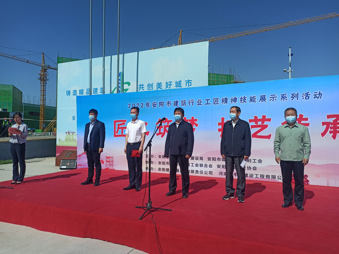 5月16日,由安陽市住建局、安陽市城建交通水利工會共同舉辦的“匠心筑夢 技藝傳承”2022年度安陽市建筑行業(yè)工匠技能展示活動在安陽師范學(xué)院教學(xué)實驗綜合樓項目工地舉行。集團公司常務(wù)副總楊金貴、副總經(jīng)理王福民、王超帶隊參加了活動。