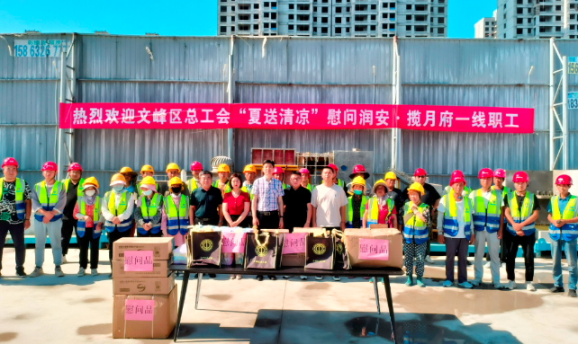 為做好防暑降溫工作,切實保障一線職工的健康安全。6月15日上午,安陽市文峰區(qū)總工會常務(wù)副主席連繼業(yè)、副主席閆妍一行深入集團(tuán)公司潤安攬月府項目部開展“夏送清涼”走訪慰問。集團(tuán)公司副董事長李志超、工會主席王福民、攬月府項目總經(jīng)理張帆等對工會領(lǐng)導(dǎo)的到來表示熱烈歡迎。